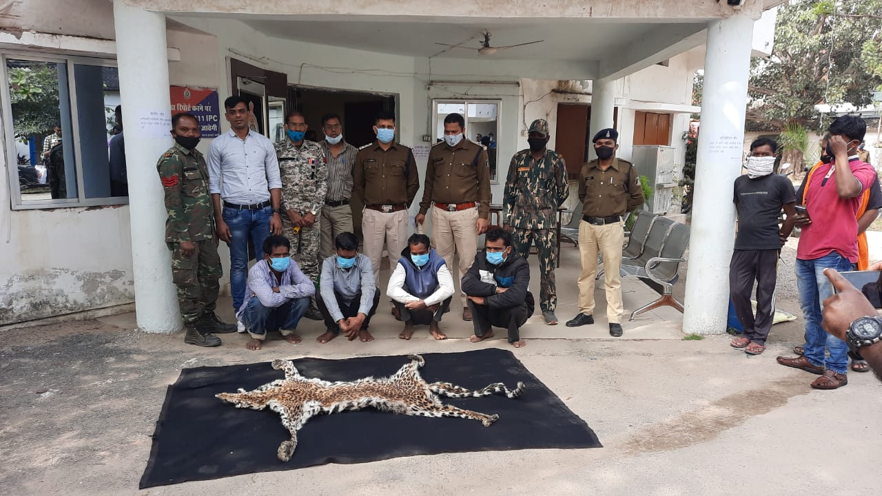 जिसकी सूचना पर वरिष्ठ अधिकारियों निर्देशन में थाना कांकेर एवं सायबर सेल की संयुक्त पुलिस टीम द्वारा ग्राम लेन्डारा जाकर सूचना की तस्दीक की गई सूचना तस्दीक के दौरान मुखबिर द्वारा बताये गये स्थान आरोपी सिया राम भास्कर निवासी लेन्डारा के घर के सामने आरोपी सिया राम भास्कर पिता कोमल सिंह उम्र 37 वर्ष निवासी लेन्डारा थाना कांकेर , आरोपी शत्रुघन नेताम पिता सोना राम नेताम उम्र 32 वर्ष निवासी पुजारी पारा खड़गांव थाना विश्रामपुरी , राजेश सरोज पिता श्याम कार्तिक उम्र 40 वर्ष ग्राम भिरौद थाना नरहरपुर , अर्जुन सलाम पिता सुकदेव सलाम उम्र 40 वर्ष निवासी गौरगांव थाना केशकाल के संयुक्त आधिपत्य से एक बैंग में भरकर रखा हुआ वन्य जीव तेन्दुआ का खाल बरामद हुआ।