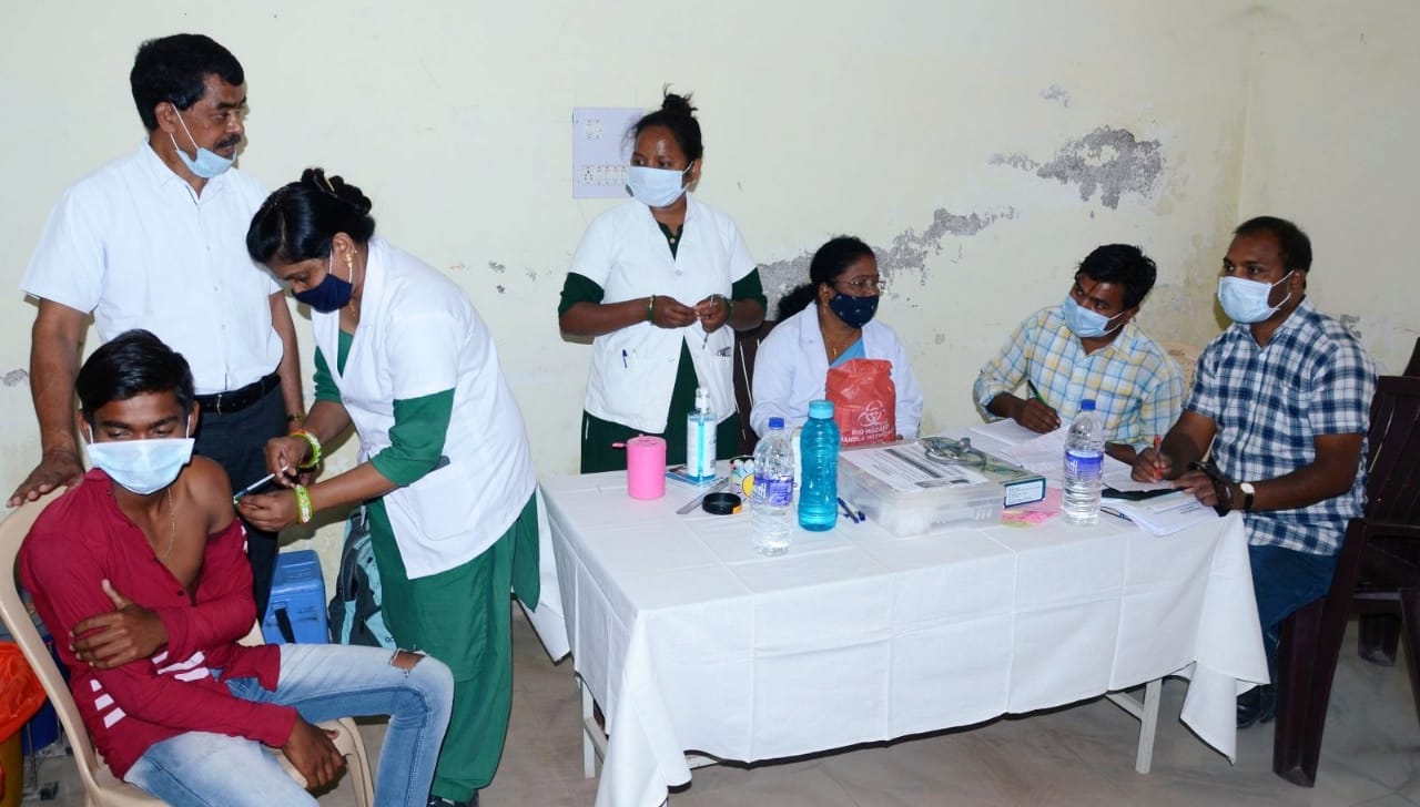 टीकाकरण के पहले दिन आज शासकीय माध्यमिक विद्यालय राजापारा कांकेर के 20 बच्चों क्रमशः पिंकी यादव, लक्ष्मी मिश्रा, हर्षिता पटेल, अभिषेक बारिया, आदित्य दुबे, गौरव, सुशांत यादव, हिमांशी कश्यप, अनुराग सिंह ठाकुर, इशिका यादव, श्रेया साहू, योगिता नेताम, भावेश, हिमांशु, ललित चौहान, विकास यादव, भावेश वासनीकर, मीनाक्षी, सोनम, जयवर्धन इत्यादि के द्वारा कोविड टीकाकरण कराया गया। इस अवसर पर सिविल सर्जन डॉ. आर.सी. ठाकुर, जिला टीकाकरण अधिकारी डॉ. आई.के. सोम, बीएमओ डॉ. ओंकार सिंह पटेल, सुपरवाईजर चन्द्रिका यादव, यूनिसेफ जिला समन्वयक रेहाना तबासुम सहित मेडिकल अधीक्षक रवि सोनी भी उपस्थित थे।