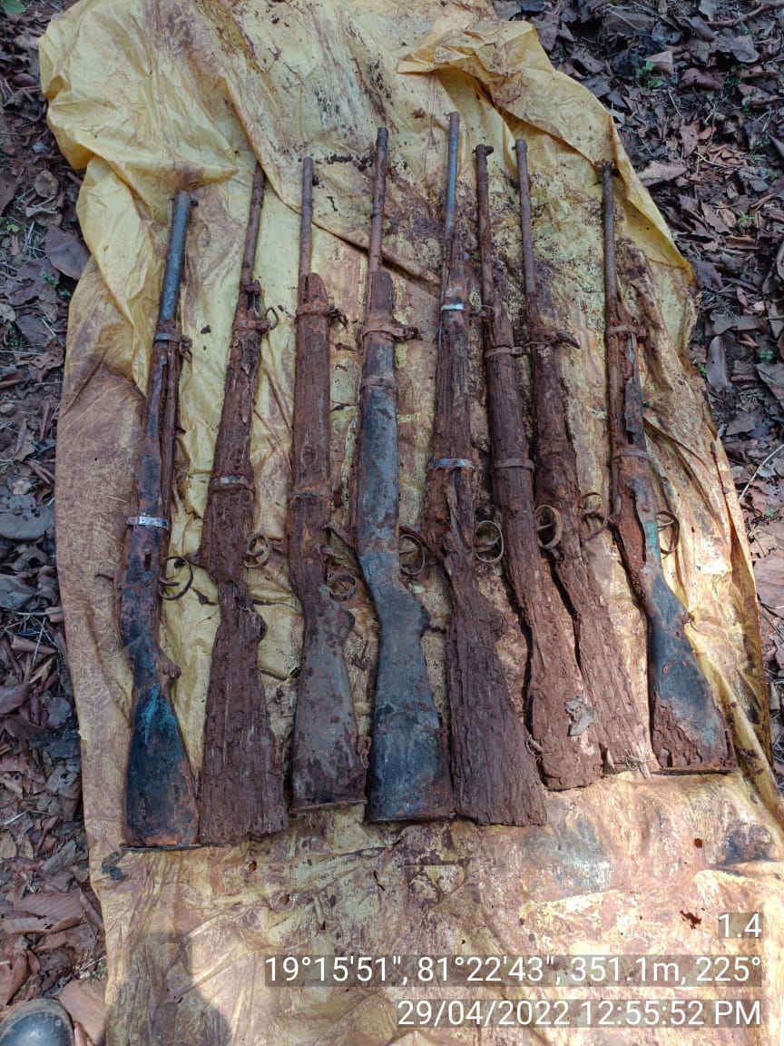 कड़ेमेटा कैम्प अटैक की घटना के बाद पुलिस द्वारा पकड़वाने के डर से नक्सली मिलिशिया सदस्यों के 08 नग हथियार को बोदली गांव के जंगल में जमीन में गाड़कर छिपाना बताया। जिस पर सदानंद कुमार पुलिस अधीक्षक नारायणपुर के निर्देशानुसार दिनांक 30.04.2022 को कैम्प कड़ेमेटा से अभिषेक पैकरा पुलिस अनुविभागीय अधिकारी छोटेडोंगर, अजय सोनकर थाना प्रभारी छोटेडोंगर के नेतृत्व में डीआरजी की पुलिस पार्टी ग्राम बोदली के लिए रवाना किया गया।
