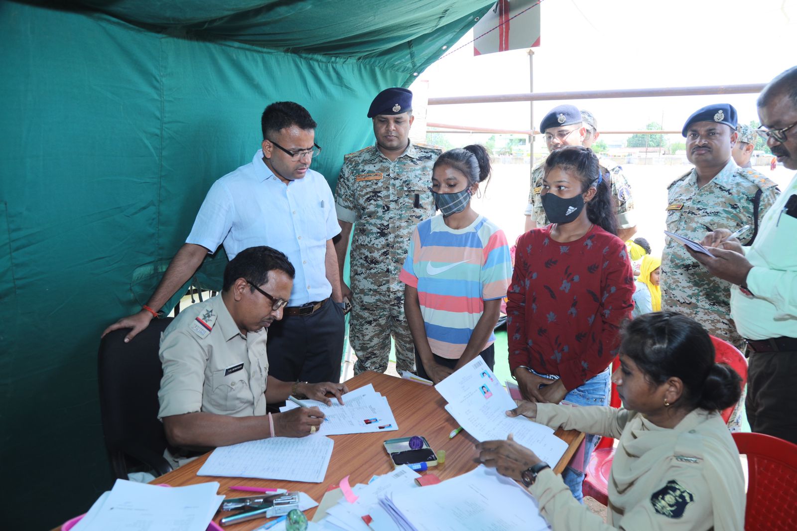 जिले के कलेक्टर चन्दन कुमार और पुलिस अधीक्षक शलभ कुमार सिन्हा ने आज खेल मैदान सिंगारभाट पहुंचकर उम्मीदवारों के दस्तावेजों का सत्यापन कार्य का अवलोकन किया एवं उम्मीदवारों से बातचीत भी की। कलेक्टर चन्दन कुमार ने ग्राम चारामा विकासखण्ड के ग्राम डोकला निवासी कुमारी खिलेश्वरी साहू एवं मनीषा सिन्हा तथा नरहरपुर विकासखण्ड के ग्राम कुसुमपानी निवासी कुमारी सीमा कुंजाम एवं लतेश्वरी से बातचीत कर दस्तावेजों का सत्यापन एवं उनके तैयारियों के संबंध में जानकारी लिया।
