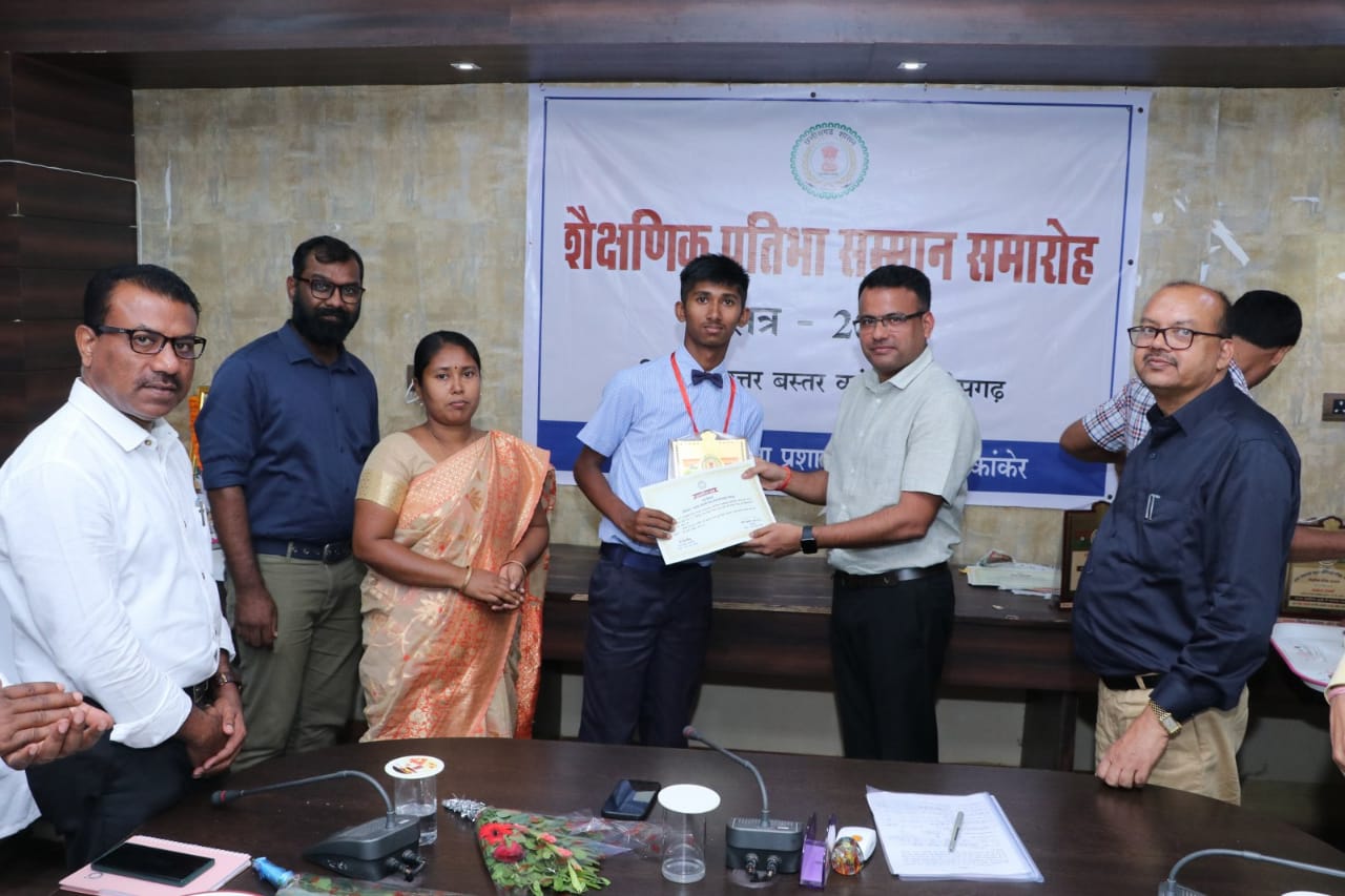 -जिला प्रशासन कांकेर द्वारा आज शैक्षणिक प्रतिभा सम्मान समारोह का आयोजन किया जाकर कक्षा 10वीं एवं 12वीं की बोर्ड परीक्षा में राज्य स्तरीय प्रावीण्य सूची में स्थान प्राप्त करने वाले जिले के विद्यार्थियों का सम्मान किया गया। जिले के प्रतिभावान विद्यार्थियों को सम्मानित करते हुए कलेक्टर चन्दन कुमार ने कहा कि इसका पूरा श्रेय विद्यार्थियों को जाता है, जिन्होंने कड़ी मेहनत कर मेरिट सूची में अपना स्थान बनाया है। उन्होंने कहा कि आप पिरामिड के ऊपर हैं, लेकिन यहां पर बने रहना एक चुनौती है। आपको जो आज गर्व के रूप में देख रहे हैं, वे आपको भविष्य के तराजू में तौलेंगे। आप लोगों ने जो कड़ी मेहनत की है, उसे श्रृंखला में बनाये रखें, इसी तरह आप आगे भी मेहनत करें और अन्य विद्यार्थियों को भी बतायें। आपका व्यक्तित्व संतुलित होना चाहिए, पढ़ाई के साथ-साथ आप अपने रूचि को भी पूरा करें। कलेक्टर श्री चन्दन कुमार ने मेरिट सूची के विद्यार्थियों को बधाई देते हुए उनके माता-पिता एवं गुरूजनों को शुभकामनाएं दी।