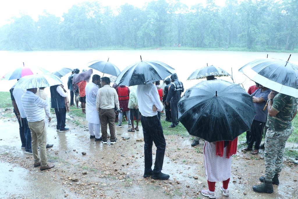 पखांजूर तहसील के ग्राम पंचायत विकासपल्ली के ग्राम पी.व्ही.110 निवासी परिमल मलिक एवं उसकी पत्नी और तीन बच्चियों की कच्चे मकान के दीवार गिरने से दबने के कारण मृत्यु होने की सूचना मिलने पर अंतागढ़ विधानसभा क्षेत्र के विधायक श्री अनुप नाग और कांकेर कलेक्टर डॉ प्रियंका शुक्ला तथा पुलिस अधीक्षक श्री शलभ कुमार सिन्हा व अतिरिक्त पुलिस अधीक्षक धीरेन्द्र पटेल अधिकारियों के साथ घटनास्थल के समीपस्थ ग्राम कुरेनार पहुंच कर नदी के बढ़े हुए जलस्तर का जायजा लिया ।