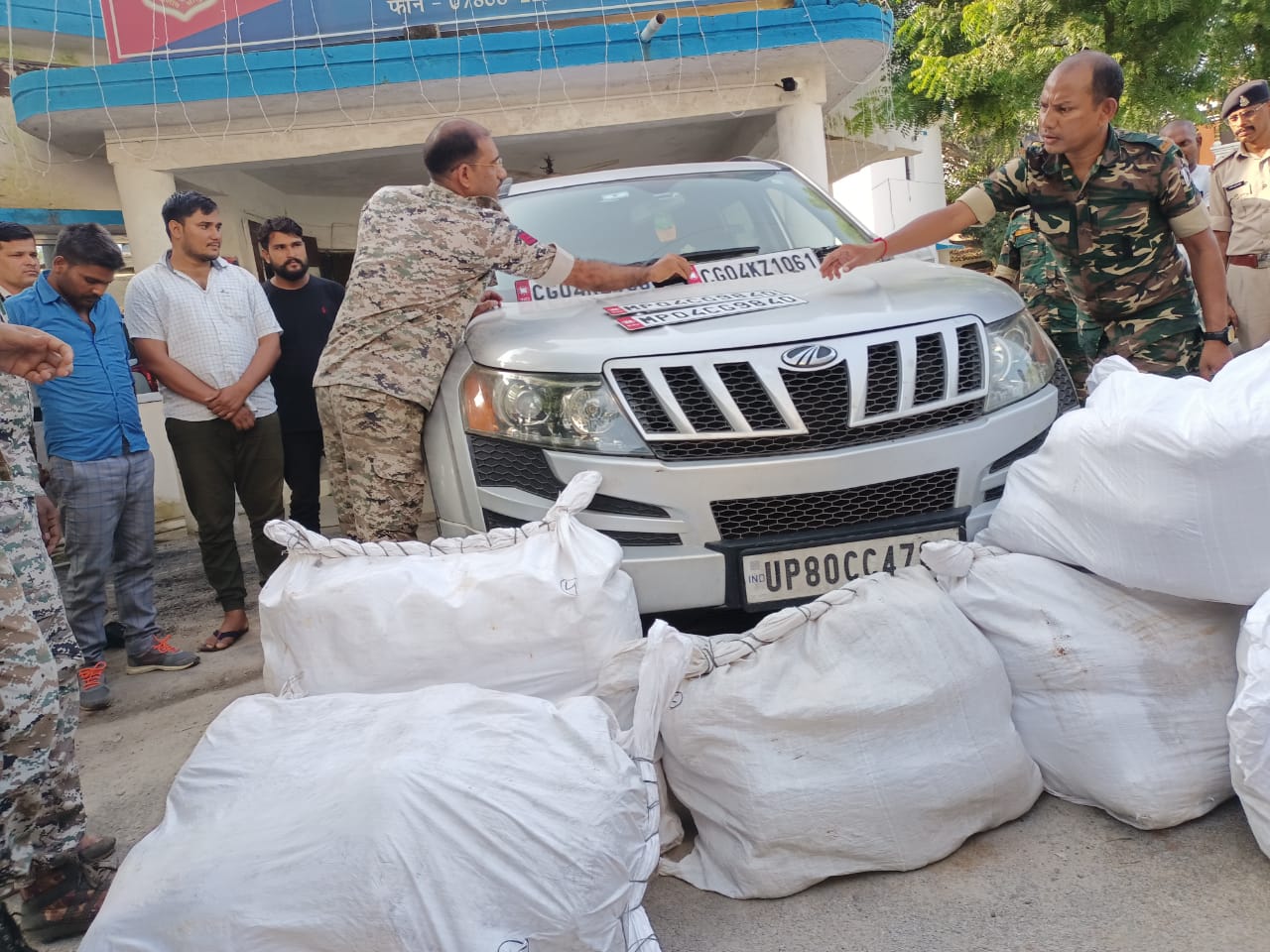 कांकेर पुलिस ने लग्जरी कार में गांजा तस्करी करने वाले दो आरोपियों को गिरफ्तार किया है। आरोपियों के पास से पुलिस ने एक्सयूव्ही कार से 02 क्विंटल 21 किलो गांजा जब्त किया गया है। जप्त गांजे एवं कार की कीमत लगभग 32 लाख से अधिक बताई जा रही है। सूचना के अनुसार आगरा एवं मथुरा क्षेत्र के तीन व्यक्ति महिंद्रा एक्स यू वी कार क्रमांक UP 80 CC 4700 में अवैध गांजा रखकर जगदलपुर से कांकेर होते आगरा की ओर ले जाने वाले हैं सूचना पर त्वरित कार्यवाही करते हुए वरिष्ठ अधिकारियों के निर्देश अनुसार थाना कांकेर एवं साइबर सेल की टीम द्वारा उक्त तस्करों की घेराबंदी कर कार क्रमांक UP 80 CC 4700 को पकड़ा गया।